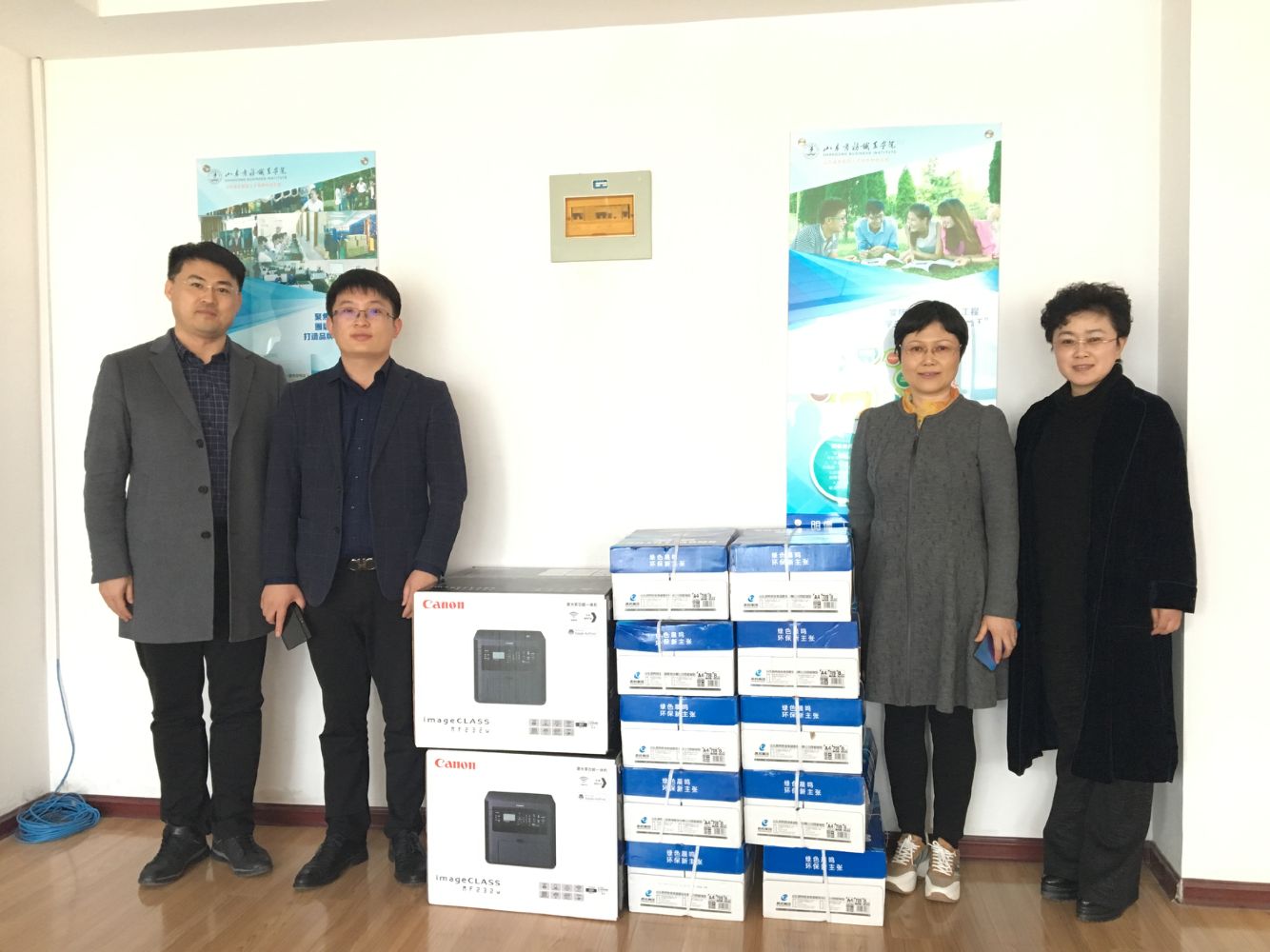3月25日下午,新科程教育科技集团有限公司为我校信息工程学院、艺术设计学院、继续教育学院捐赠了打印机、打印纸等价值10000余元的助学物资,相关部门领导出席捐赠仪式,对新课程教育科技集团的善举表达了衷心的感谢,并表示一定将这批信息化设备及办公用品用到实处。