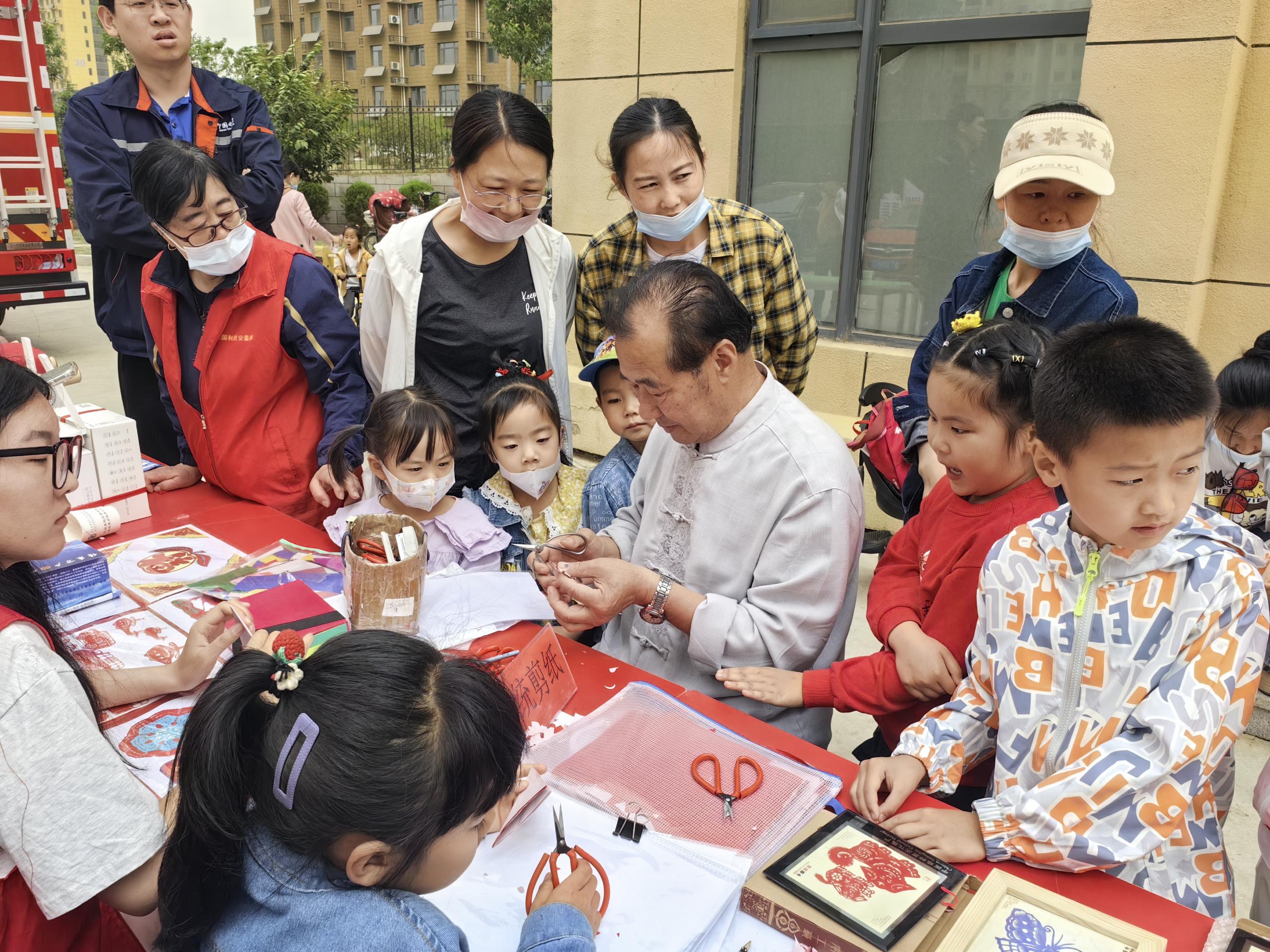 本次活动依托我校“剪纸工作室”,在社区同步设立“社区学院——剪纸小课堂”,开展现场展示和教学活动。活动现场,社区居民对传统工艺兴趣浓厚,韩老师的精美剪纸作品得到了大家的赞叹和喜爱,居民们纷纷上前请教学习。韩老师对每一位“学员”都耐心讲解、精心指导,活动结束时大家恋恋不舍,建议以后多举办此类活动。