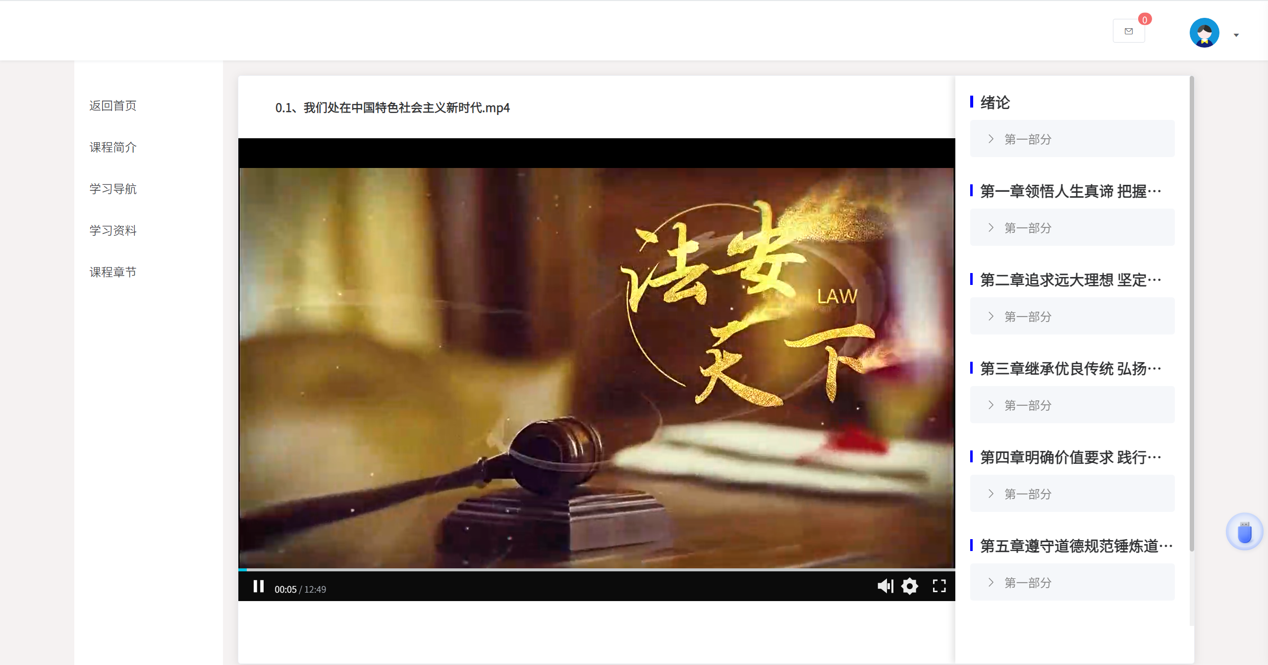 5. 进入课程界面后,根据目录从第一章开始点击视频课程学习即可。