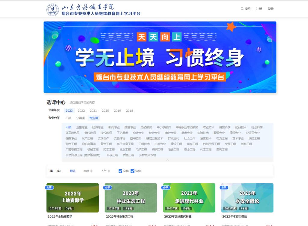山东商务职业学院专业技术人员继续教育网上学习平台为提高运行流畅,方便省市专业技术人员学习,于8月20日进行平台更新,以便捷性、专业性为导向,进行平台运行逻辑优化,预计于8月25日数据配置完成,正常使用。平台配置近五年公需科目及专业科目课程,公需科目课程符合山东省人力资源和社会保障厅必修选修专业要求,专业科目涵盖60个专业,为省市专业技术人员提供丰富的课程资源。以下为平台操作说明: